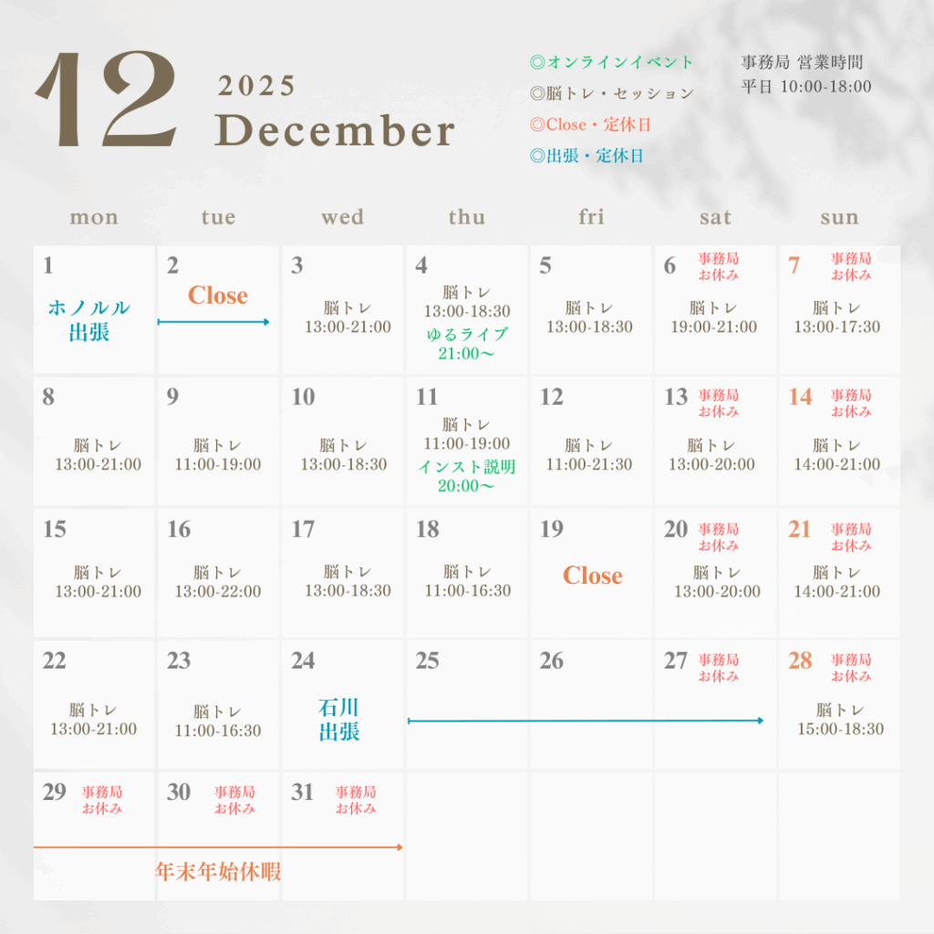 2025年12月営業日のお知らせ