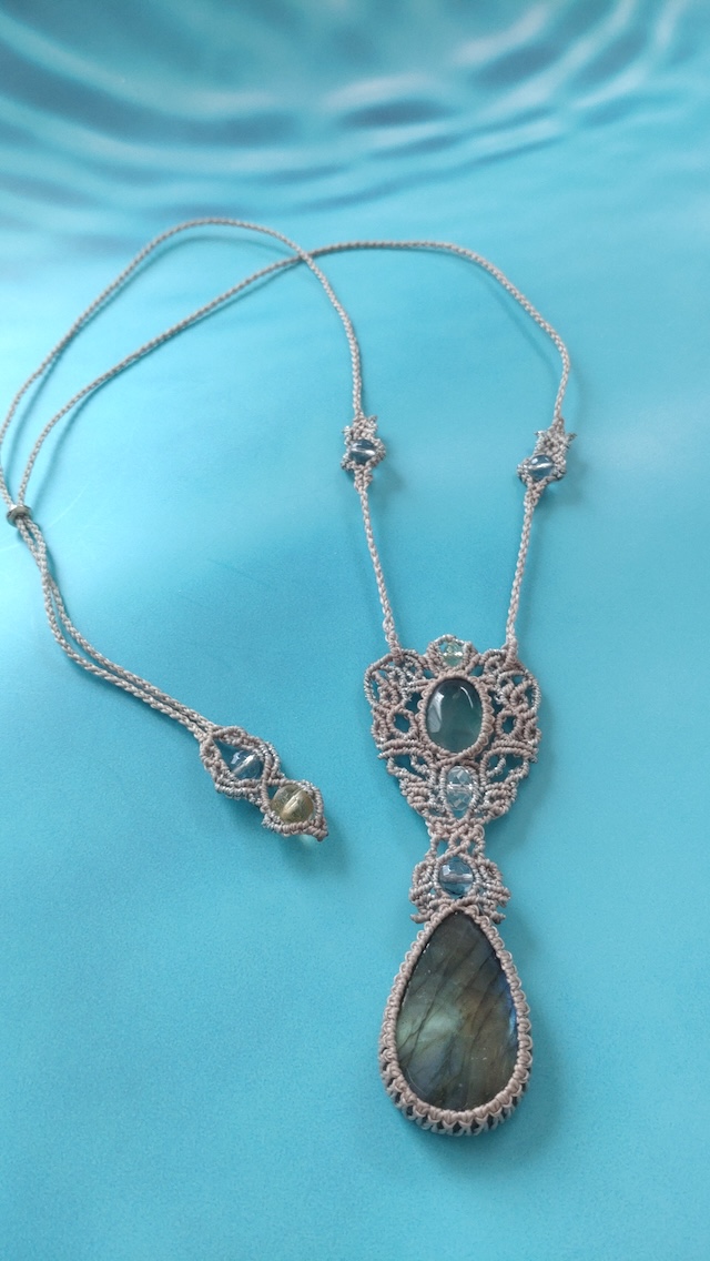 を用いたマクラメネックレスです。